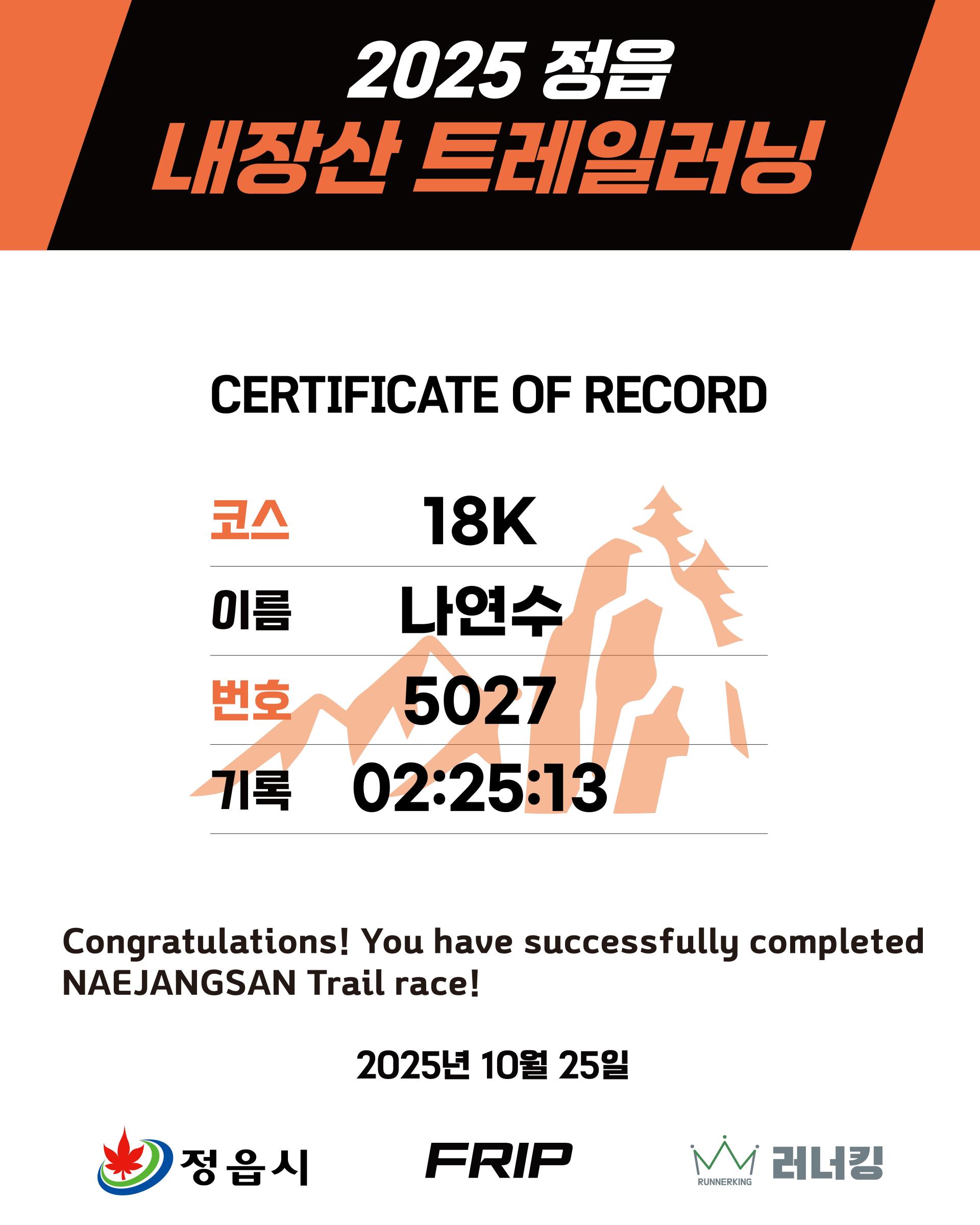 2025 정읍 내장산 트레일러닝대회 기록 조회(클릭)