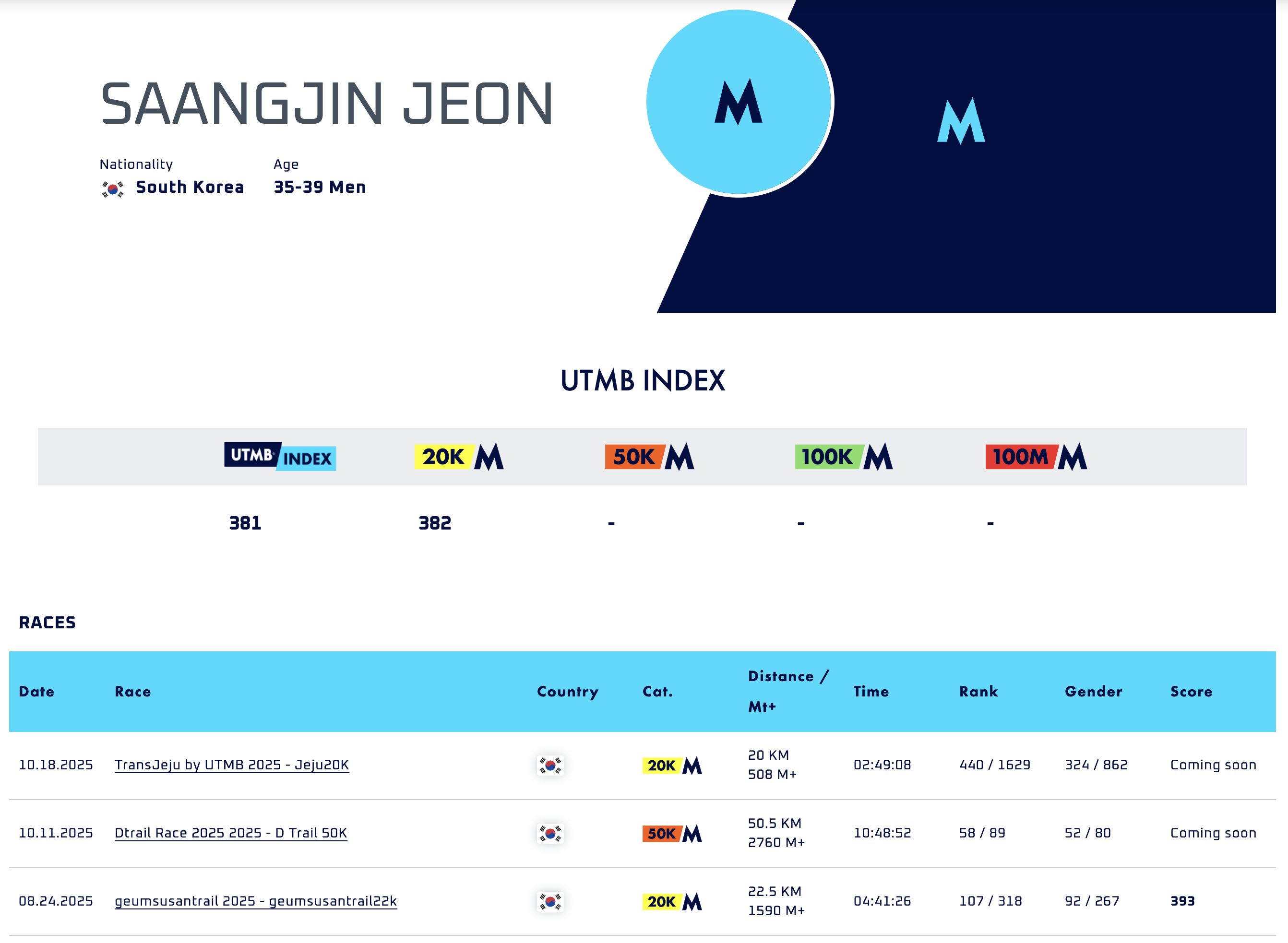 UTMB 인덱스 기록이 등록 안됐는데 확인 부탁드립니다.