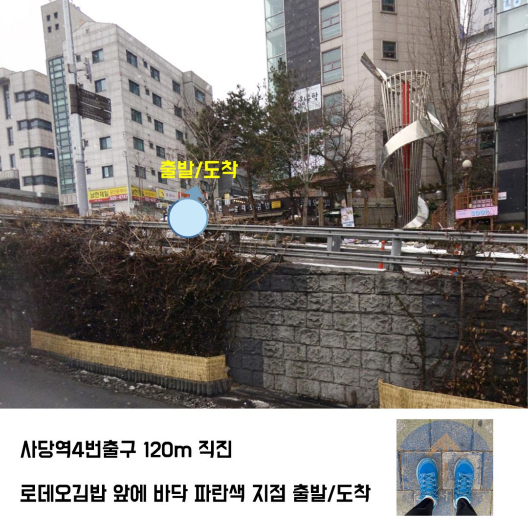 횡단보도는 건너지 않고 GS편의점에서 좌회전 후, 군부대 방향으로 직진해서 남태령역 지나서 사당역 출발지점이 도착 피니쉬입니다.