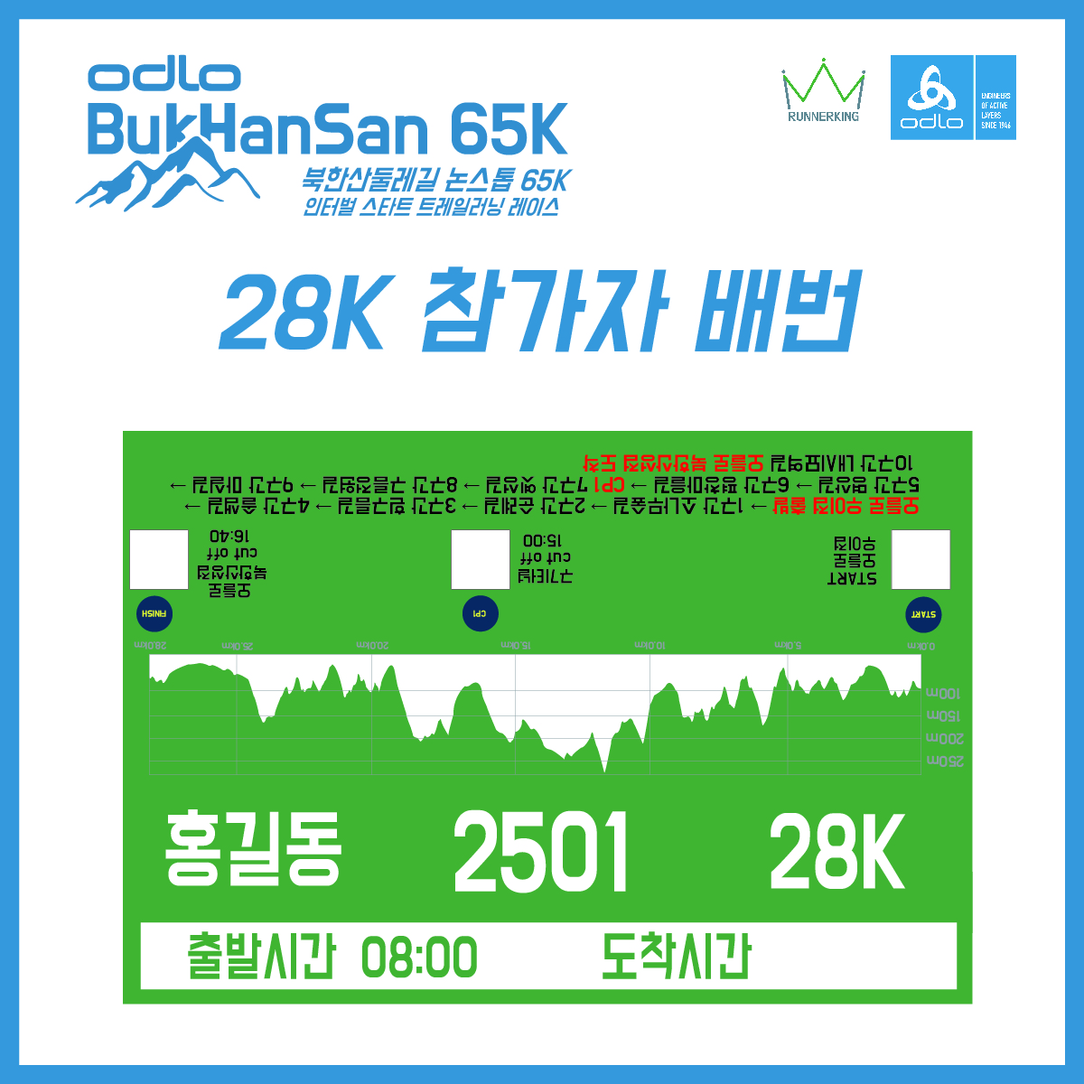 대회 당일 현장에서 접수자 확인, 온도 체크, 서약서 작성, 장비검사를 마친 후에 참가자의 배번, 기념품, 파워젤1개를 제공합니다.