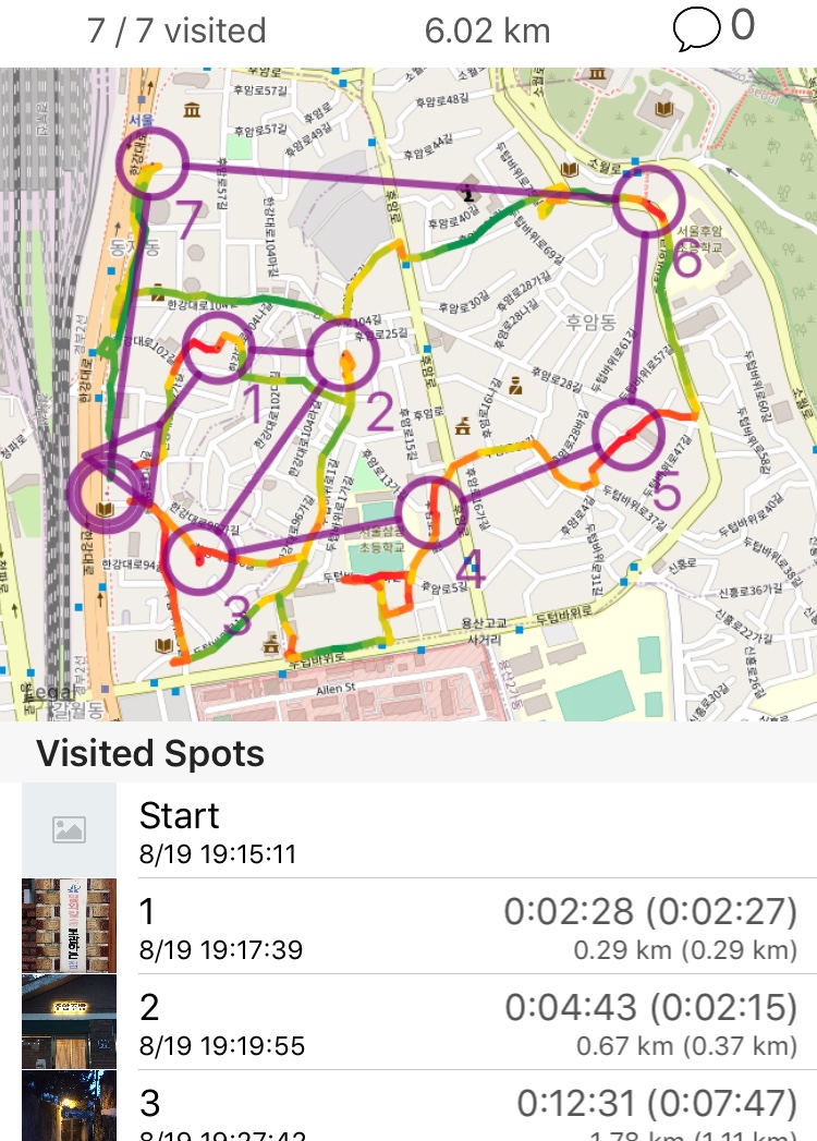 이렇게 코스를 마치고 나면 이동한 경로를 볼수있습니다.