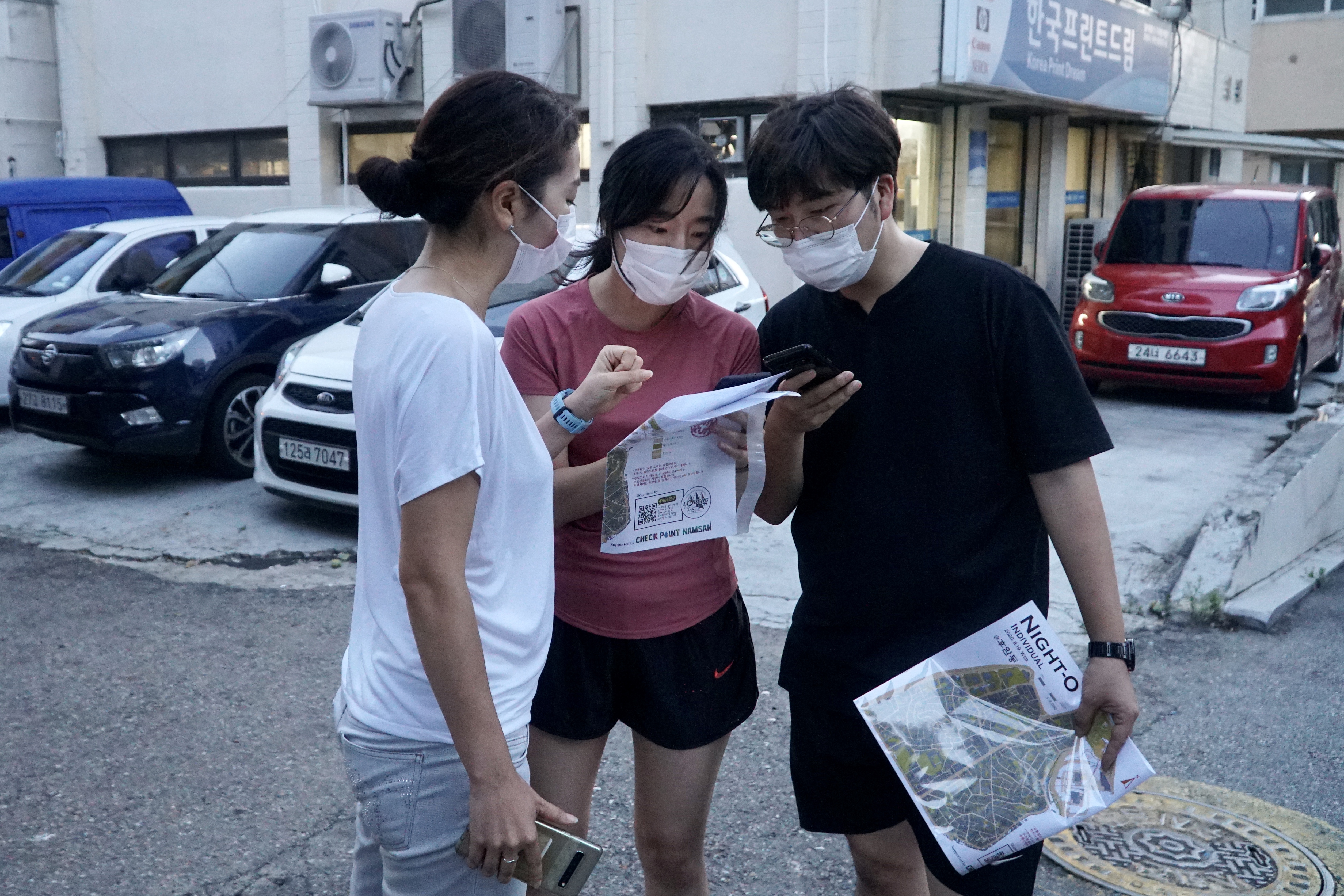 해가 지고 난 뒤 헤드랜턴을 착용하고 지도를 보면서 뛰며 난이도도 어렵지 않아 모두가 즐길 수 있습니다.