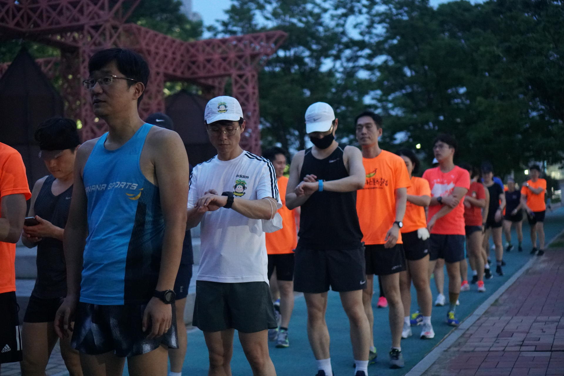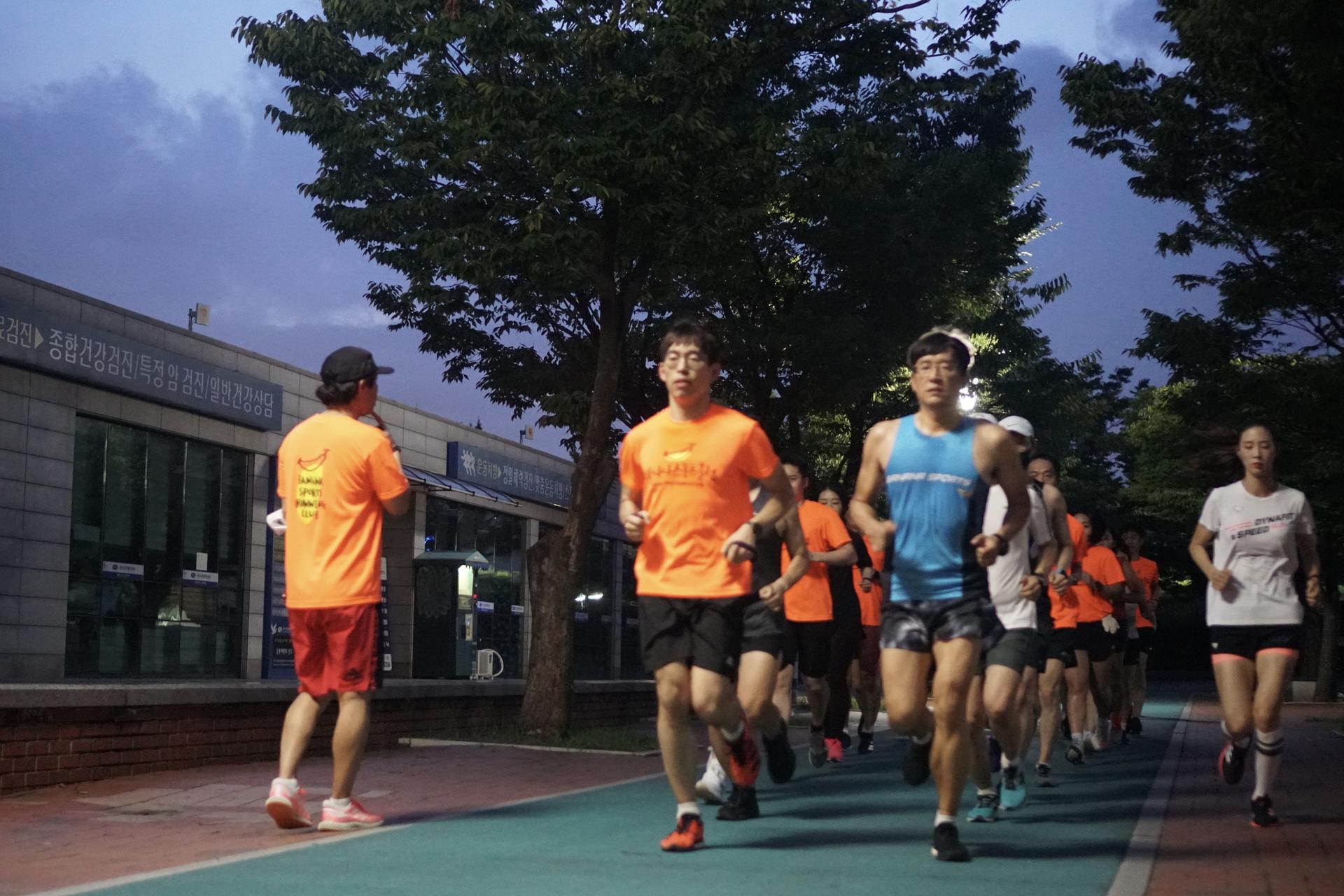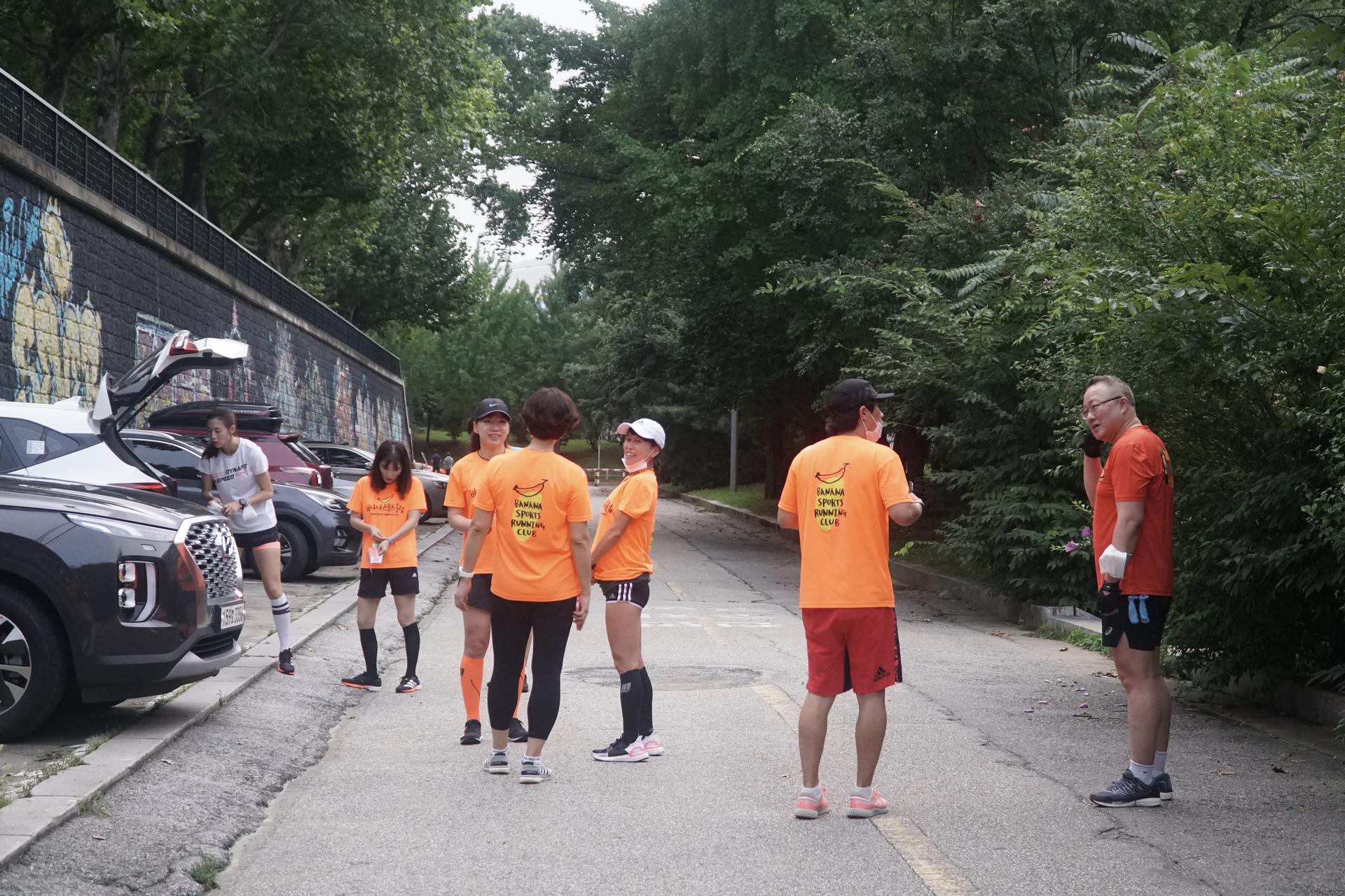 바나나스포츠 러닝프로그램 시작전 즐거운 분위기는 15분간 러닝을 마치고 본격 서킷프로그램에서 표정이 달라집니다 시작전 프로그램 설명하시는 바나나스포츠 김용택 감독님 현)아디다스 러닝 감독, 현)합천군청 코치