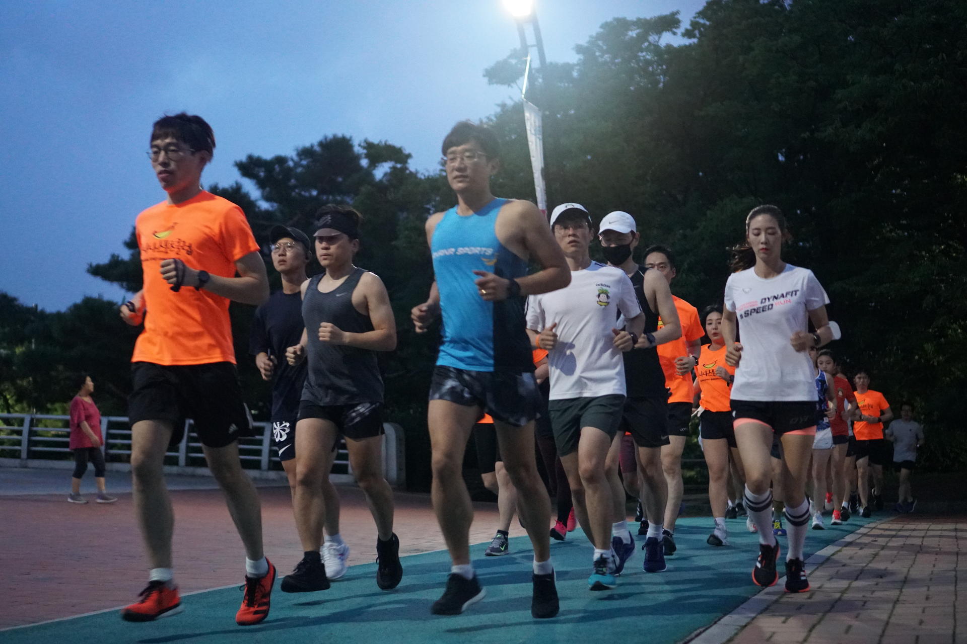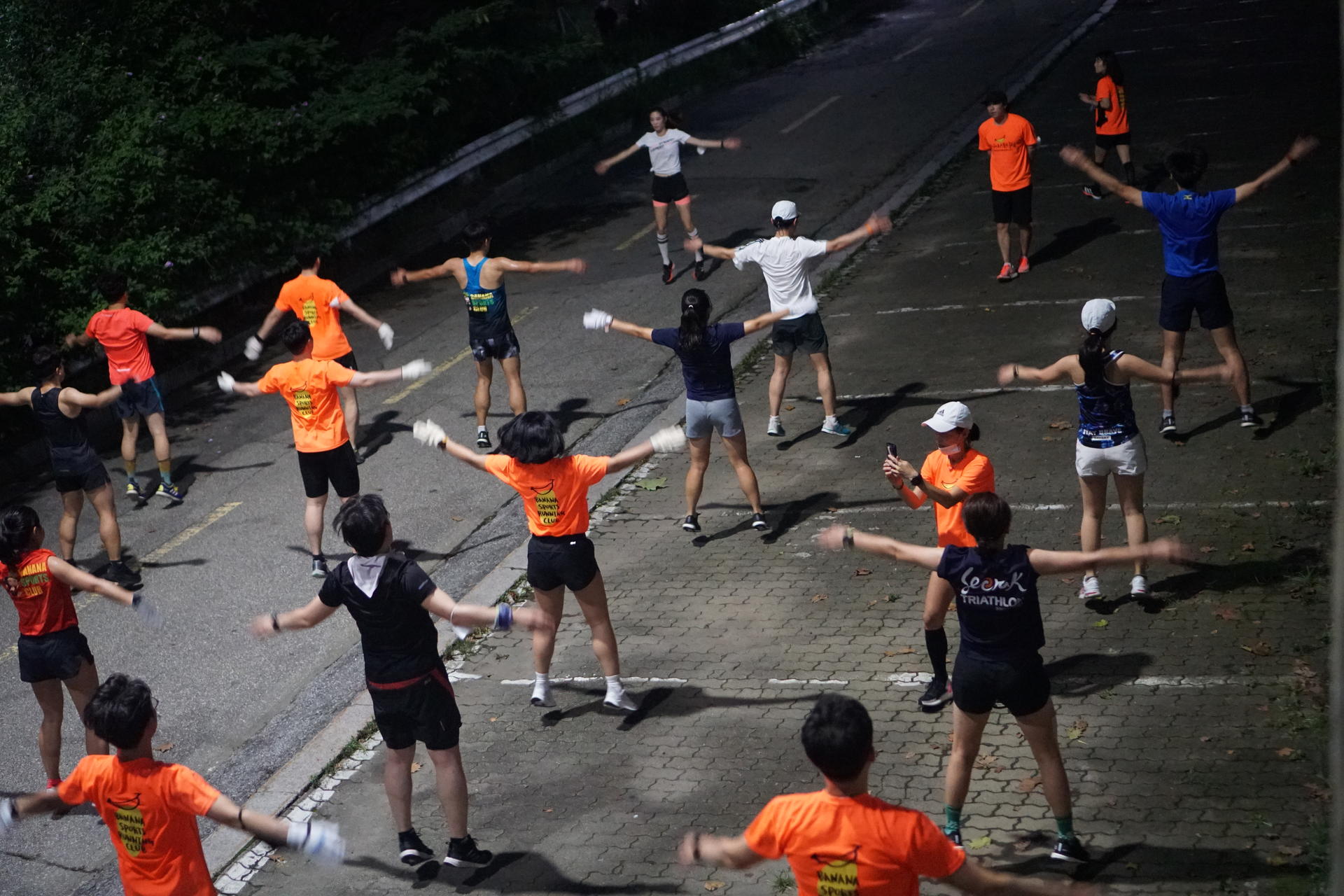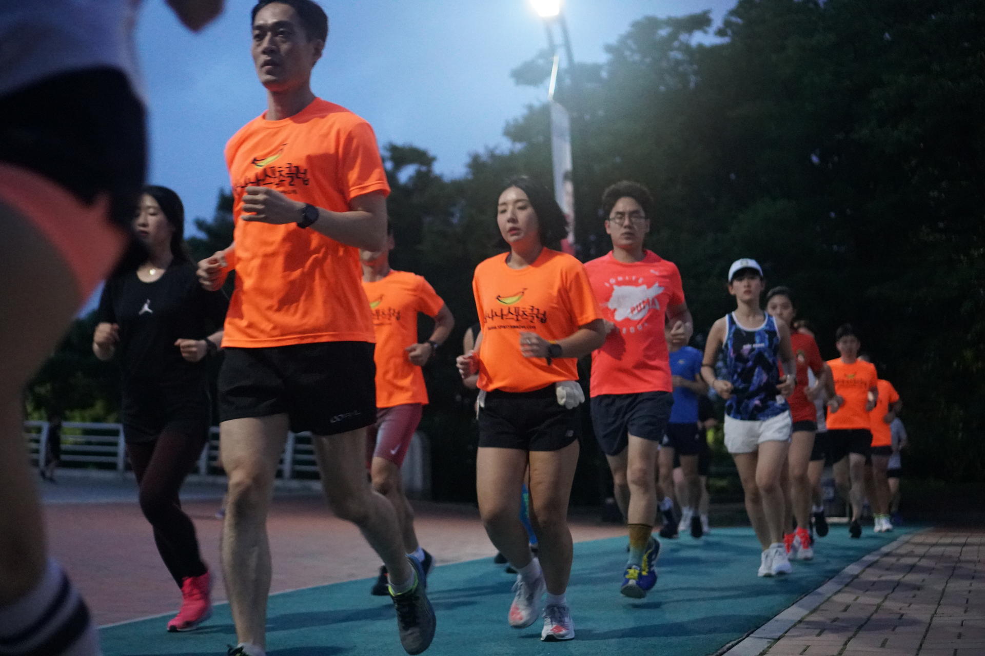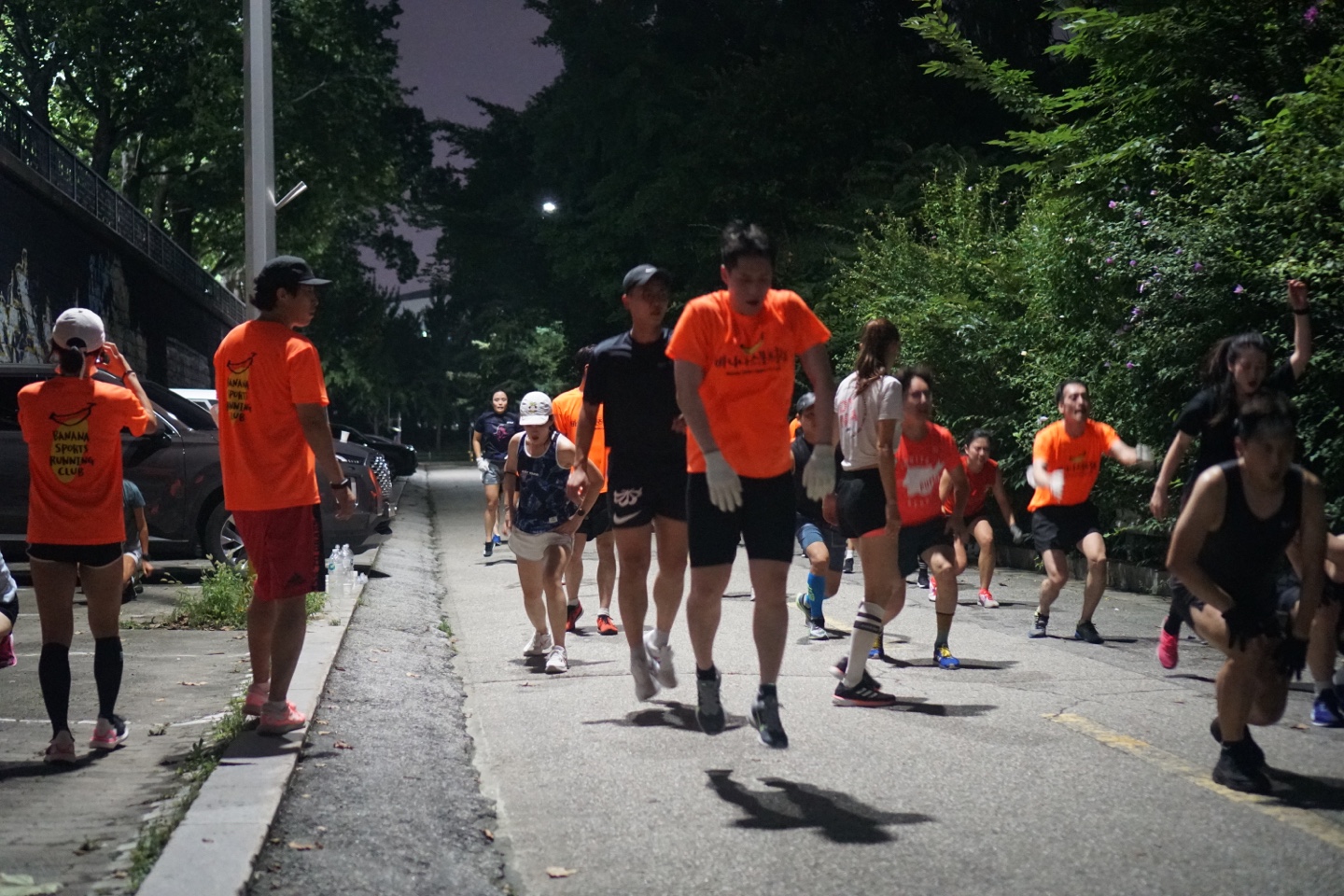 바나나스포츠 러닝프로그램 시작전 즐거운 분위기는 15분간 러닝을 마치고 본격 서킷프로그램에서 표정이 달라집니다 시작전 프로그램 설명하시는 바나나스포츠 김용택 감독님 현)아디다스 러닝 감독, 현)합천군청 코치