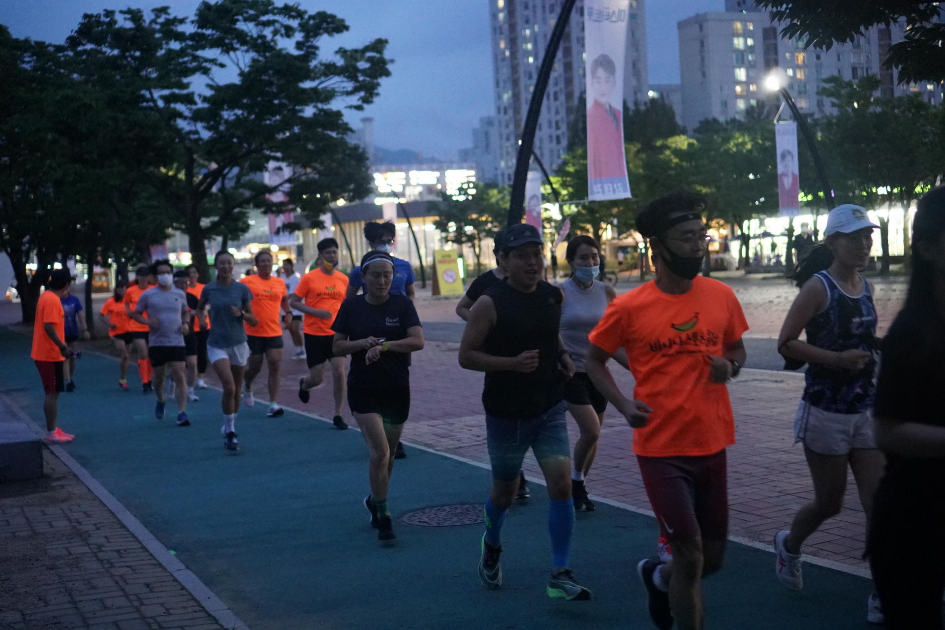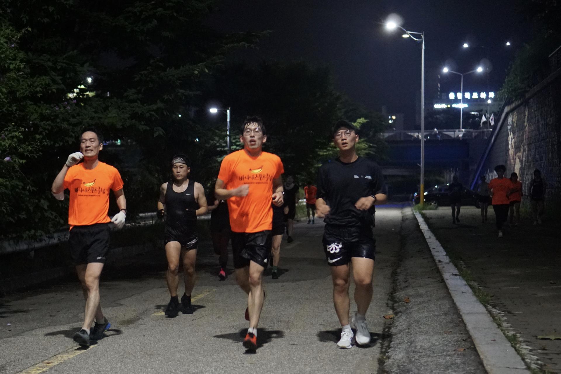 바나나스포츠 러닝클럽 단체티셔츠로, 바나나스포츠에선 바나나가 제공됩니다