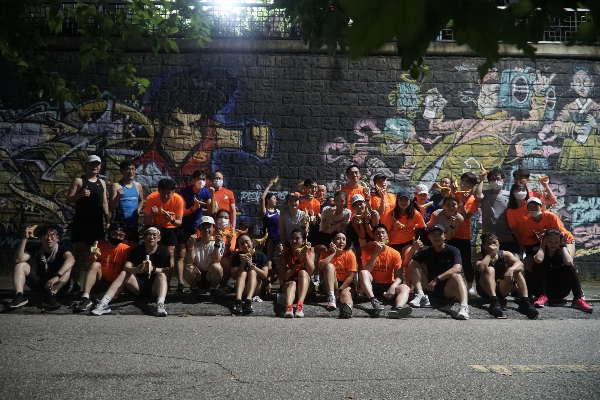 바나나스포츠 러닝클럽은 사진이 멋지게 나오는 벽화를 배경으로 시작합니다